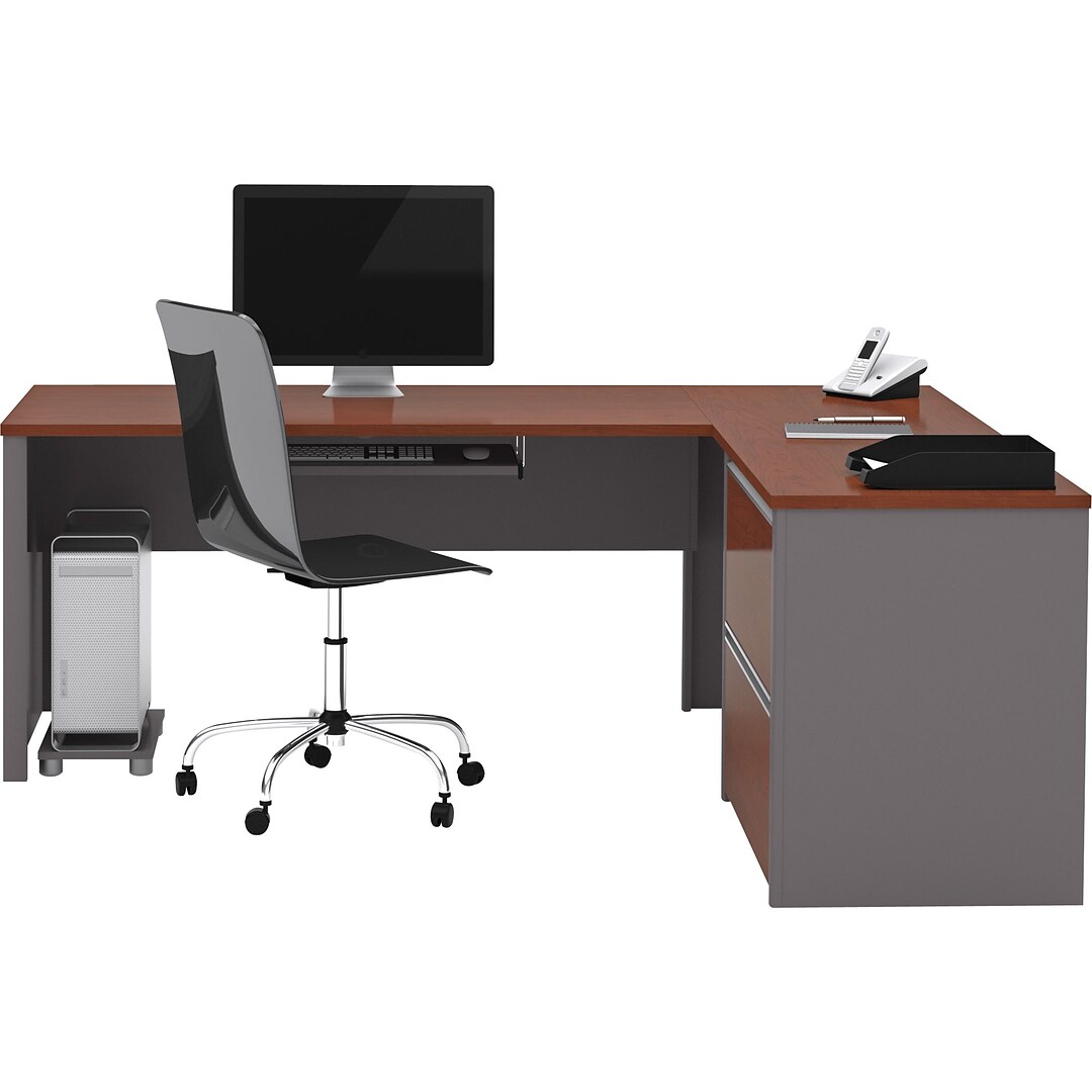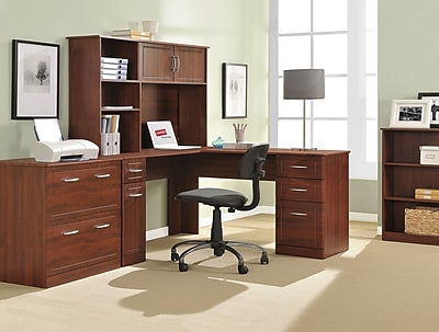 Bush furniture somerset 72w l shaped desk mocha cherry wc81810k. Vertical storage cabinet has an adjustable shelf for storing items of various sizes. Create your remote work headquarters with space for a computer phone printer and more with wire management to keep cords and cables secure and out of sight. Laminate over composite wood.