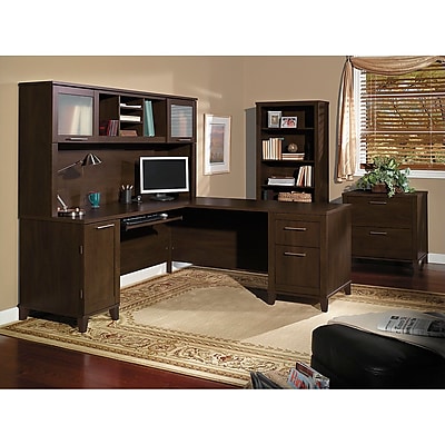 Bush Furniture Cabot L Shaped Desk W Hutch Espresso Oak Cab001epo Quill Com