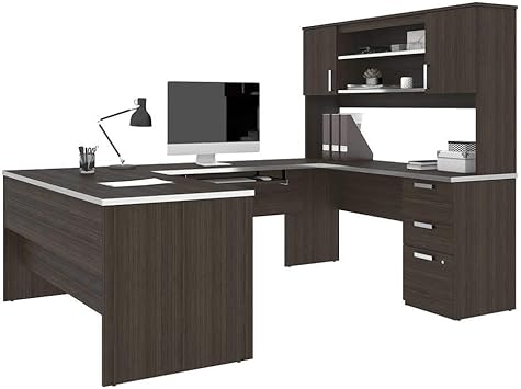 Amazon Com Bestar Universel Collection Executive Computer Desk With Pedestal And Hutch Furniture Decor
